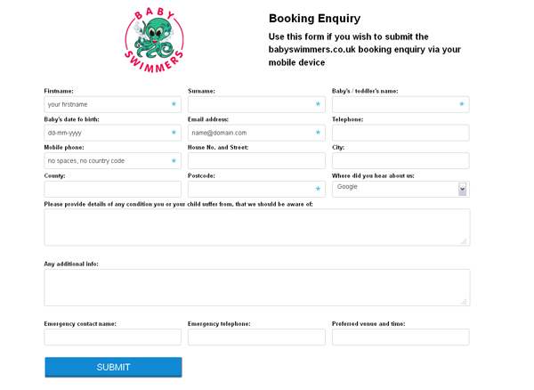 Baby Swimmers Mobile Booking